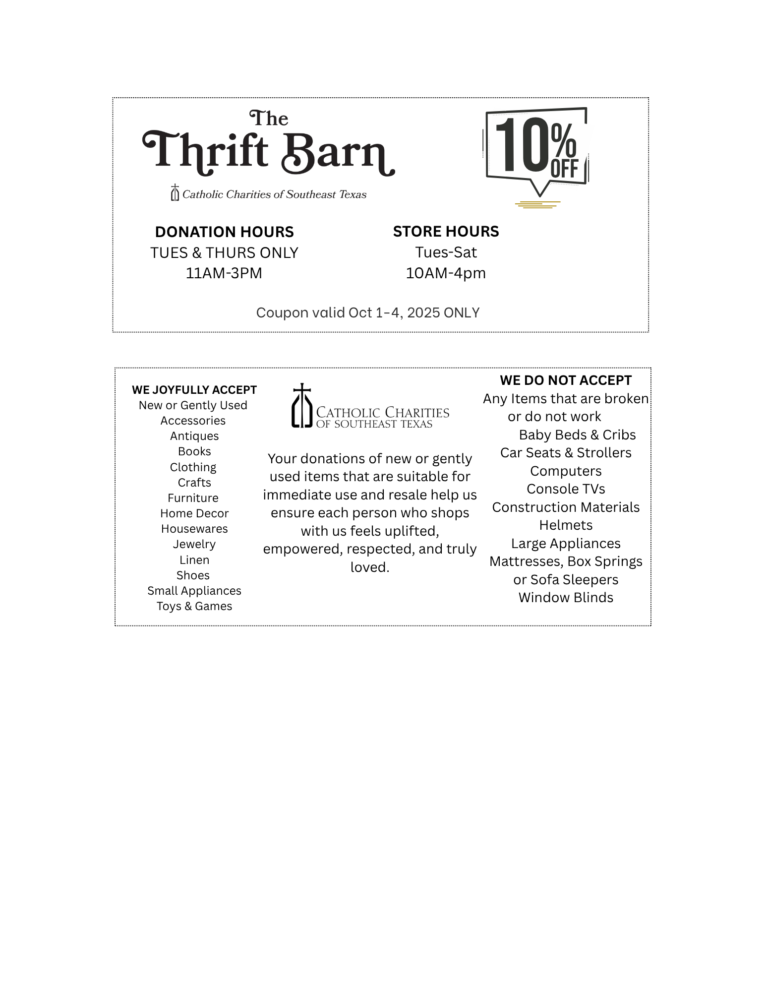 Volunteers Welcomed – The Thrift Barn of Catholic Charities of SETX in Winnie, TX